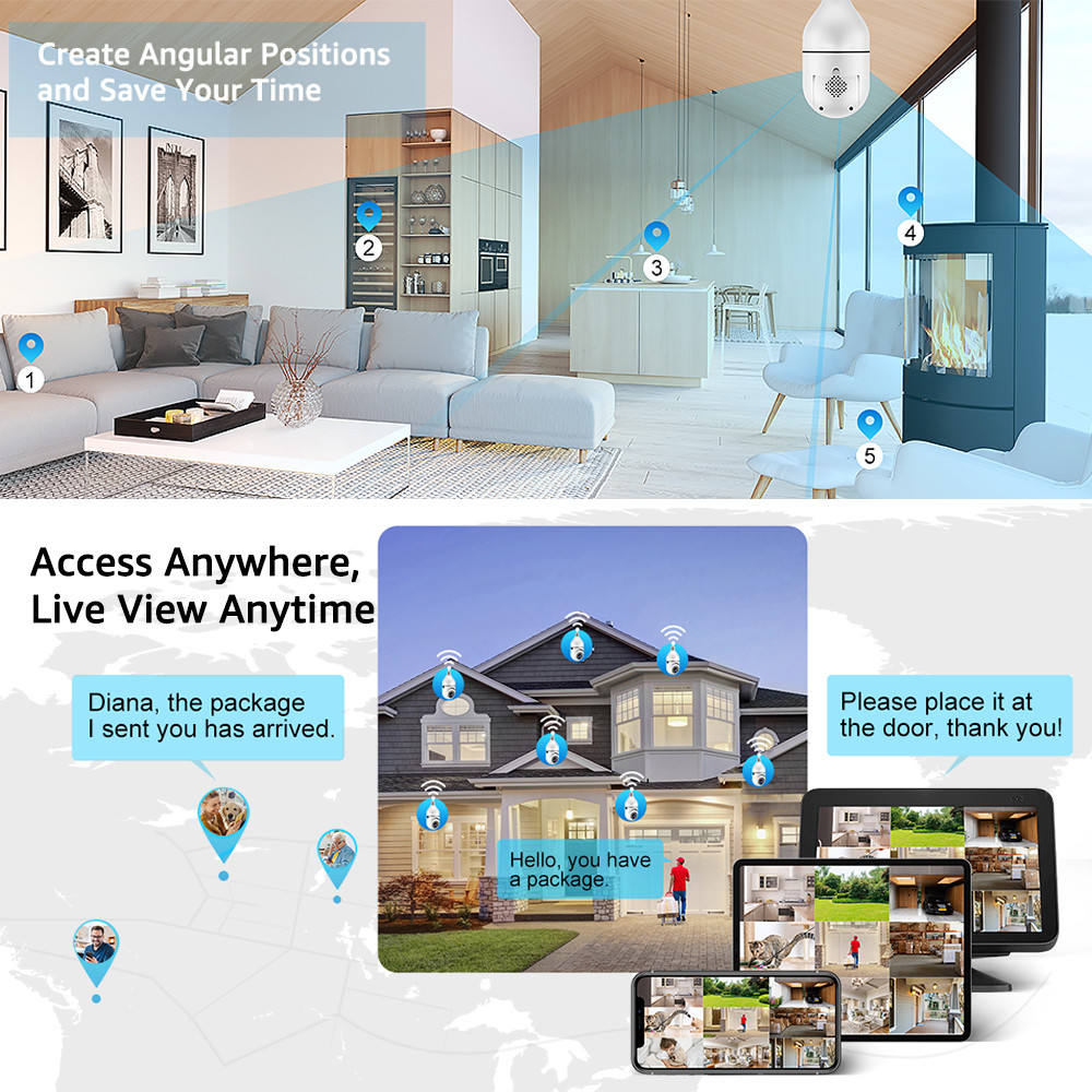 This camera revolutionizes home security by removing the hardest part: the installation. If you can change a lightbulb, you can install this camera. It draws power directly from the light socket (AC 110V-240V), ensuring continuous operation without ever needing to recharge batteries.