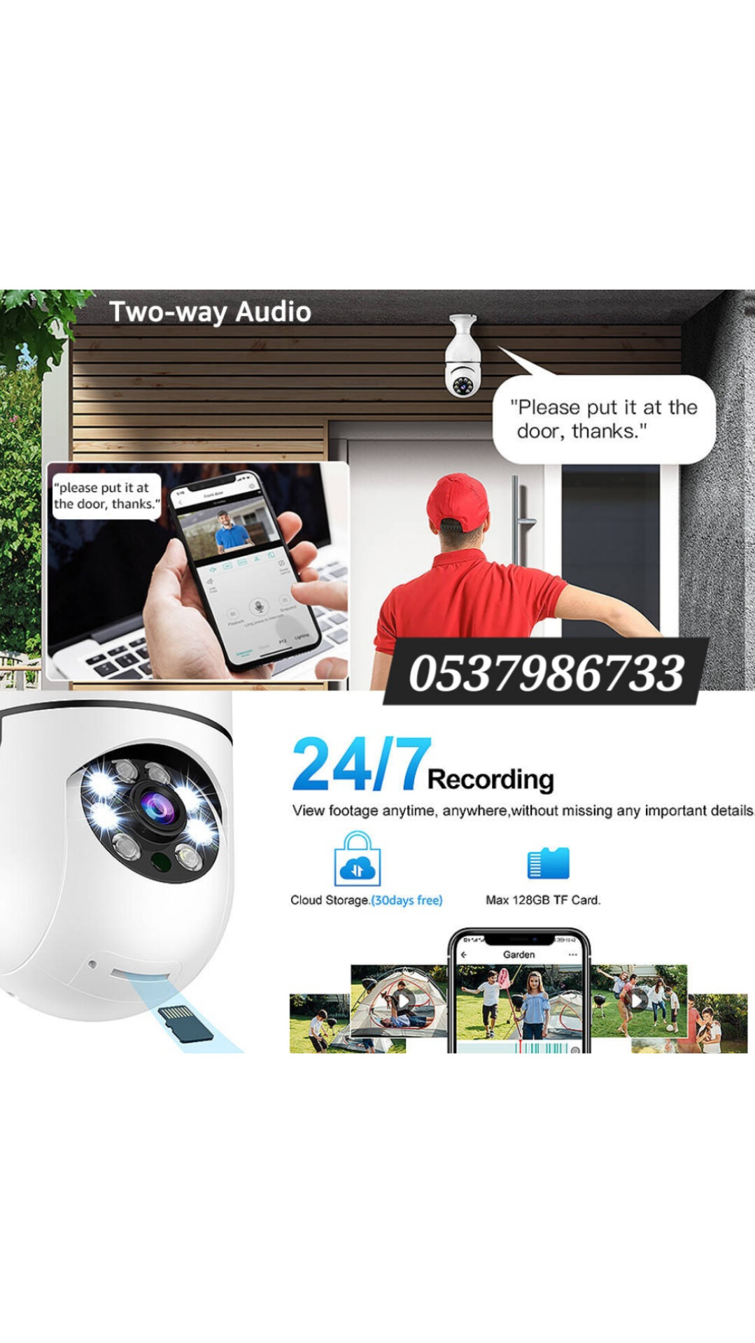 • Storage: TF Card (up to 128GB) + Cloud